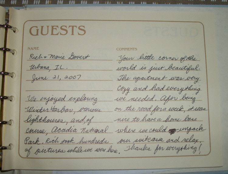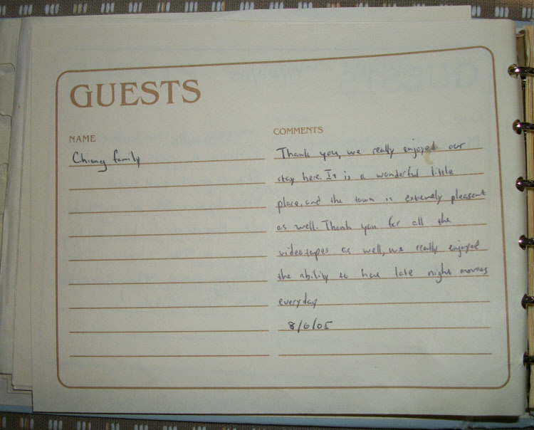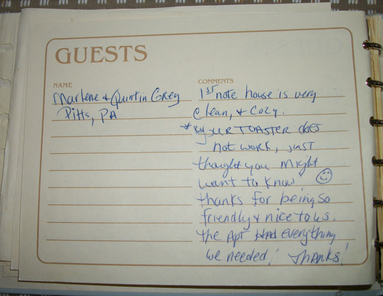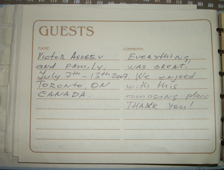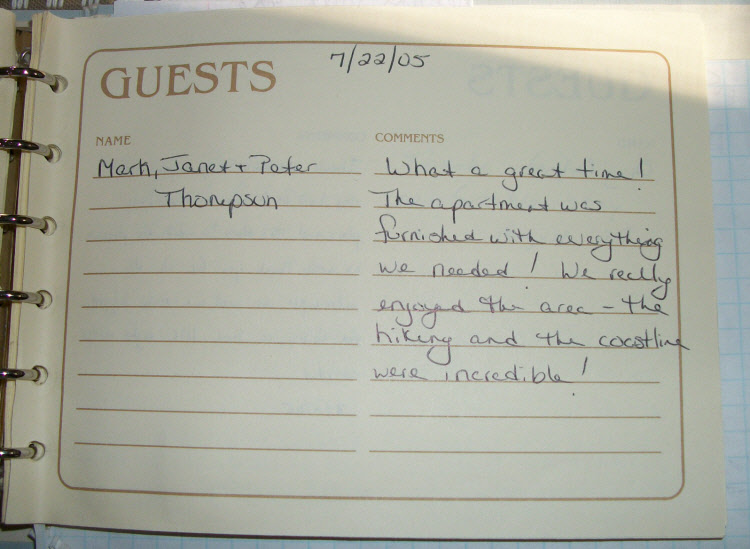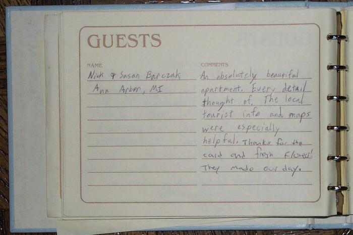 Vacation Apartments Guestbook