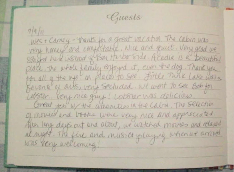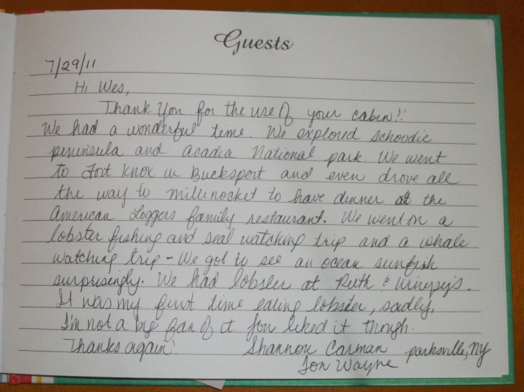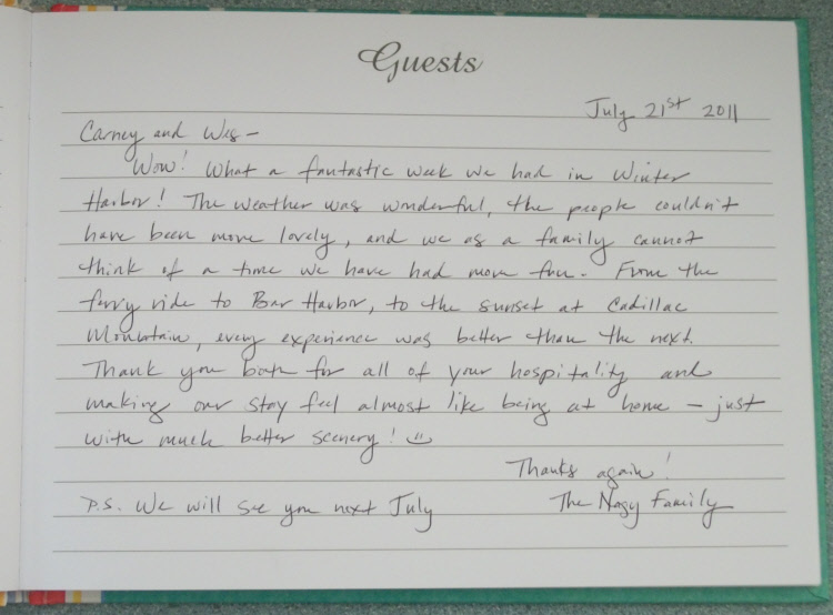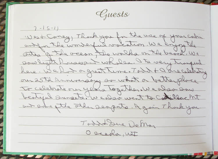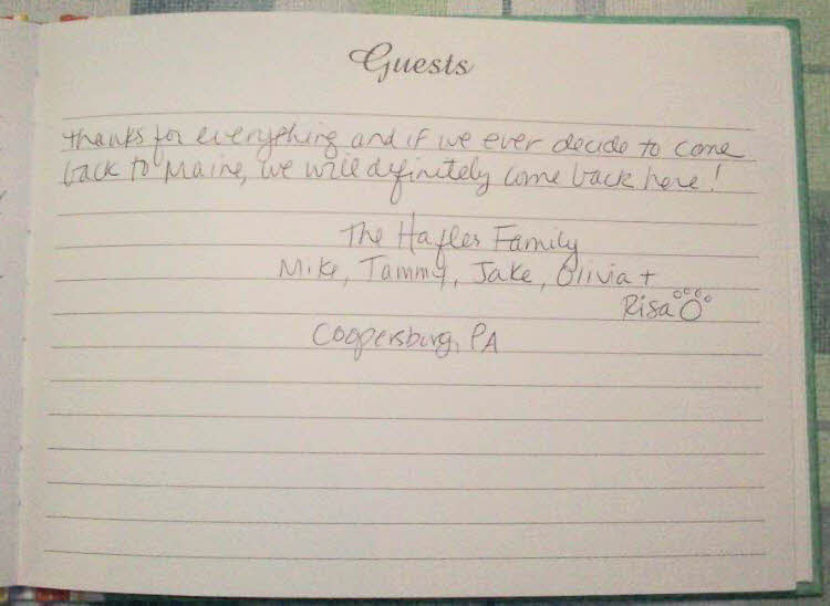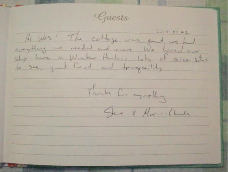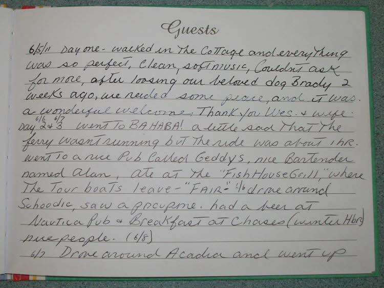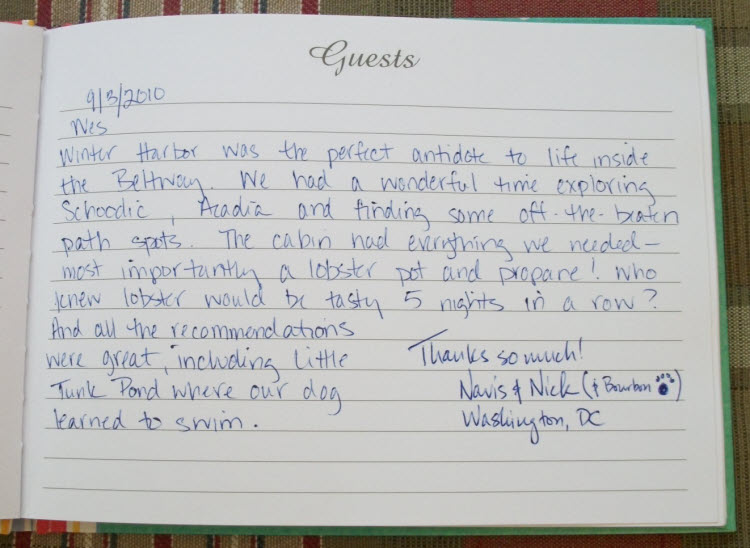 Schoodic Point Cottage Guestbook